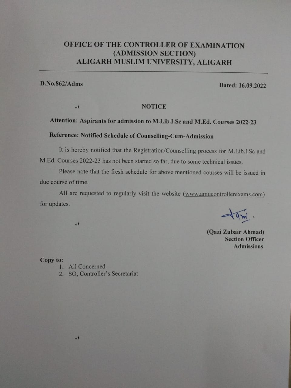 16 Sep, 2022 16:56 PM - Notice for aspirants of admission to M.Lib.I.sc. & M.Ed. courses 2022-23