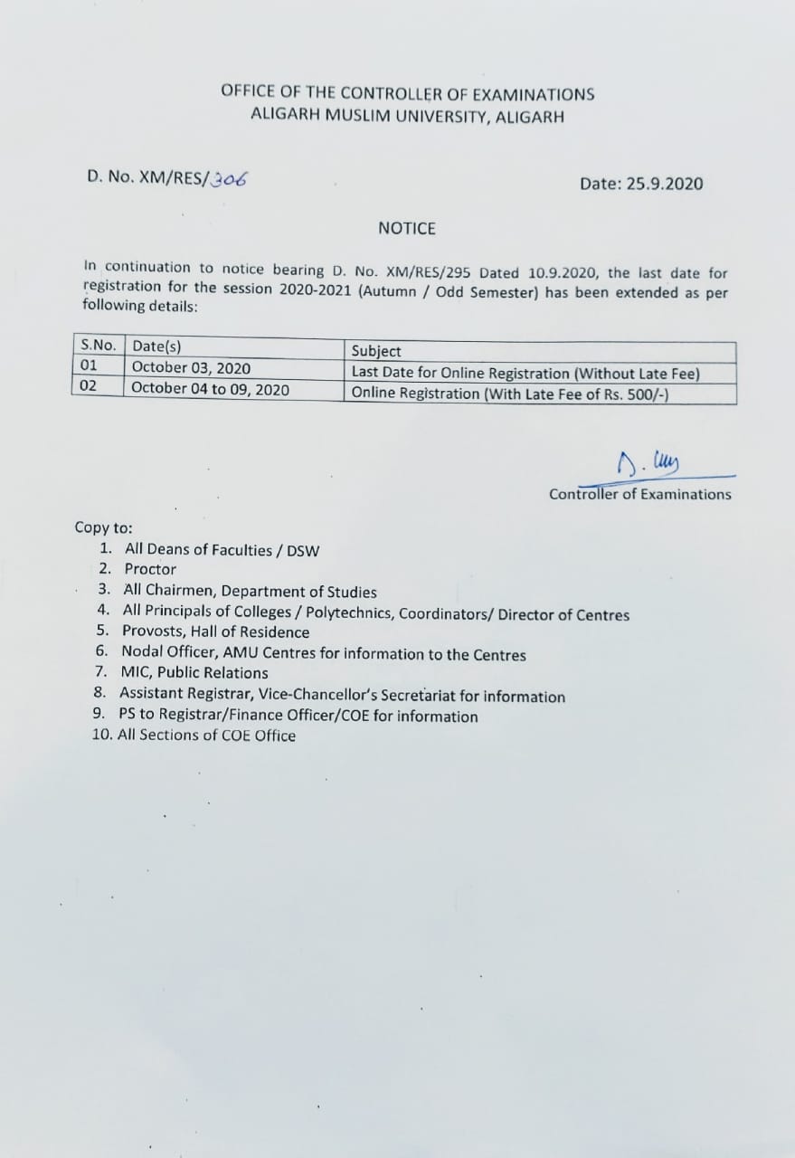 19 Oct, 2020 09:55 AM - Notice Regarding Admission to M.B.B.S. & B.D.S. Courses 2020-21 in AMU